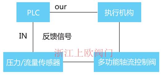 2、 將壓力傳感器輸出反饋信號送入PLC處理,經PLC預設值比較后輸出相應控制信號給電動執行裝置,并驅動閥門運轉至對應位置(閥門開度)。