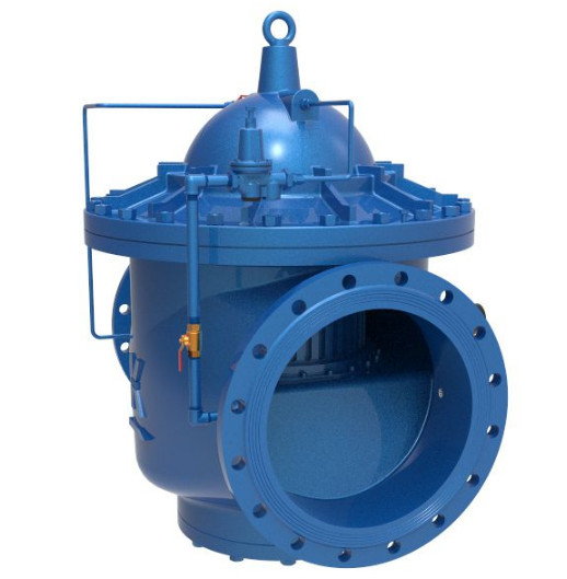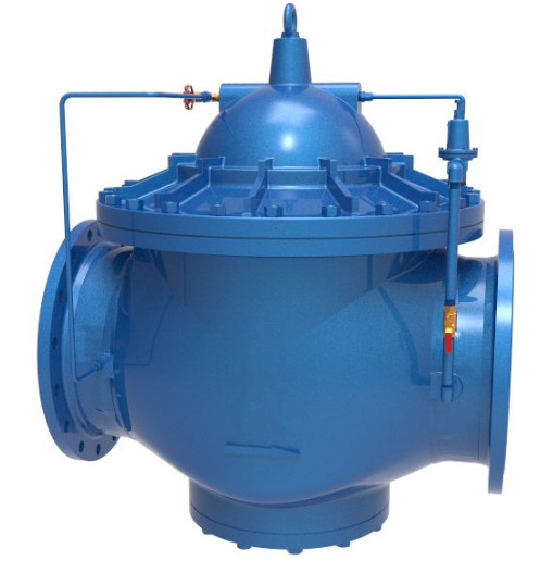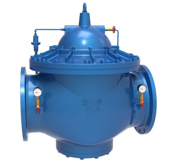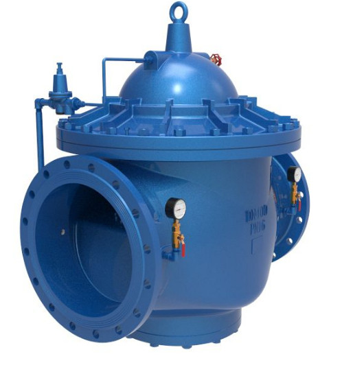 當閥門從進口端給水時,水流過針閥進入主閥控制室,出口壓力通過導管作用到導閥上。當出口壓力高于導閥彈簧設定值時,導閥關閉。控制室停止排水,此時主閥控制室內(nèi)壓力高升關閉主閥,出口壓力不再升高。當閥門出口壓力下降到導閥彈簧設定壓力時,導閥開啟,控制室向下游排水。由于導閥系統(tǒng)排水量大于針閥的進水量,主閥控制室壓力下降,進口壓力使主閥開啟。在穩(wěn)定狀態(tài)下,控制室進水、排水相同,主閥開度不變,減壓效果明顯。 該閥性能穩(wěn)定、安全可靠、安裝調(diào)節(jié)方便,使用壽命長。可用于生活給水、消防系統(tǒng)及工業(yè)給水系統(tǒng)。