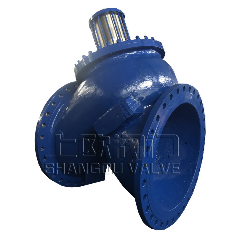 全閉狀態(tài): 當(dāng)水泵停機(jī)后。閥門中的水流速度降低,在接于近零時,主閥板在彈簧力和自身重力作用下快速關(guān)閉,而閥后的壓力水通過導(dǎo)管系統(tǒng)返回膜片(活塞)上腔,并推動固定閥桿上的小閥板緩慢關(guān)閉 |